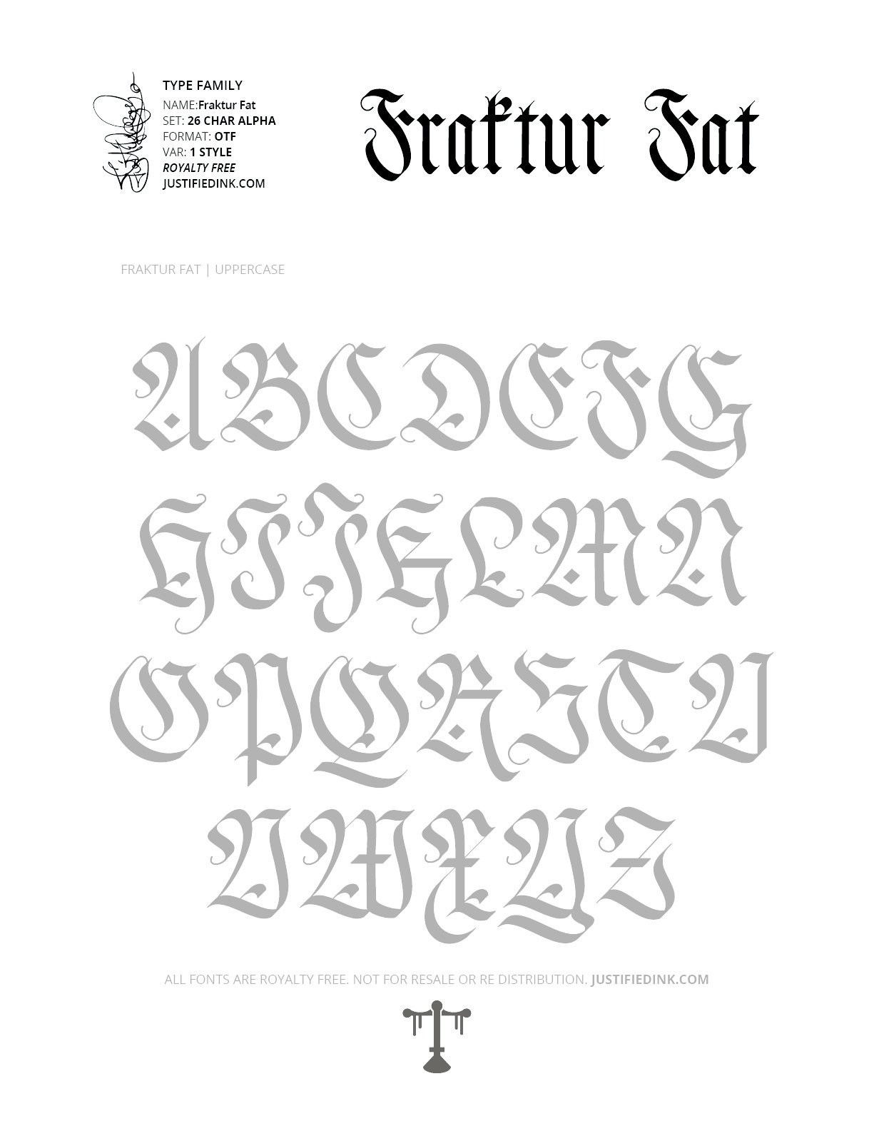 Fraktur Fat Font By Justified Ink has been forged for creators of every kind—tattooists, designers, illustrators—these fonts are yours to wield freely in personal or professional work.