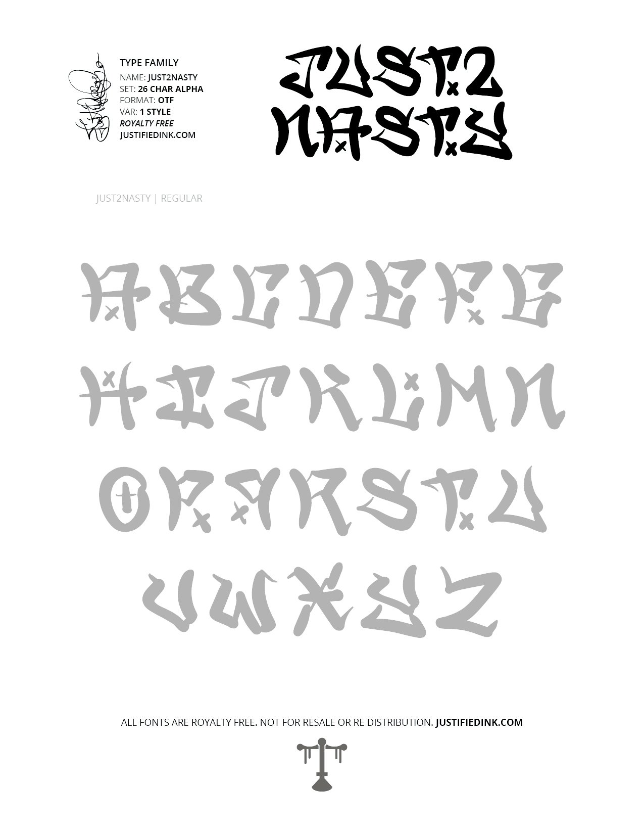 **All fonts are royalty free. not for resale or re distribution. justifiedink.com