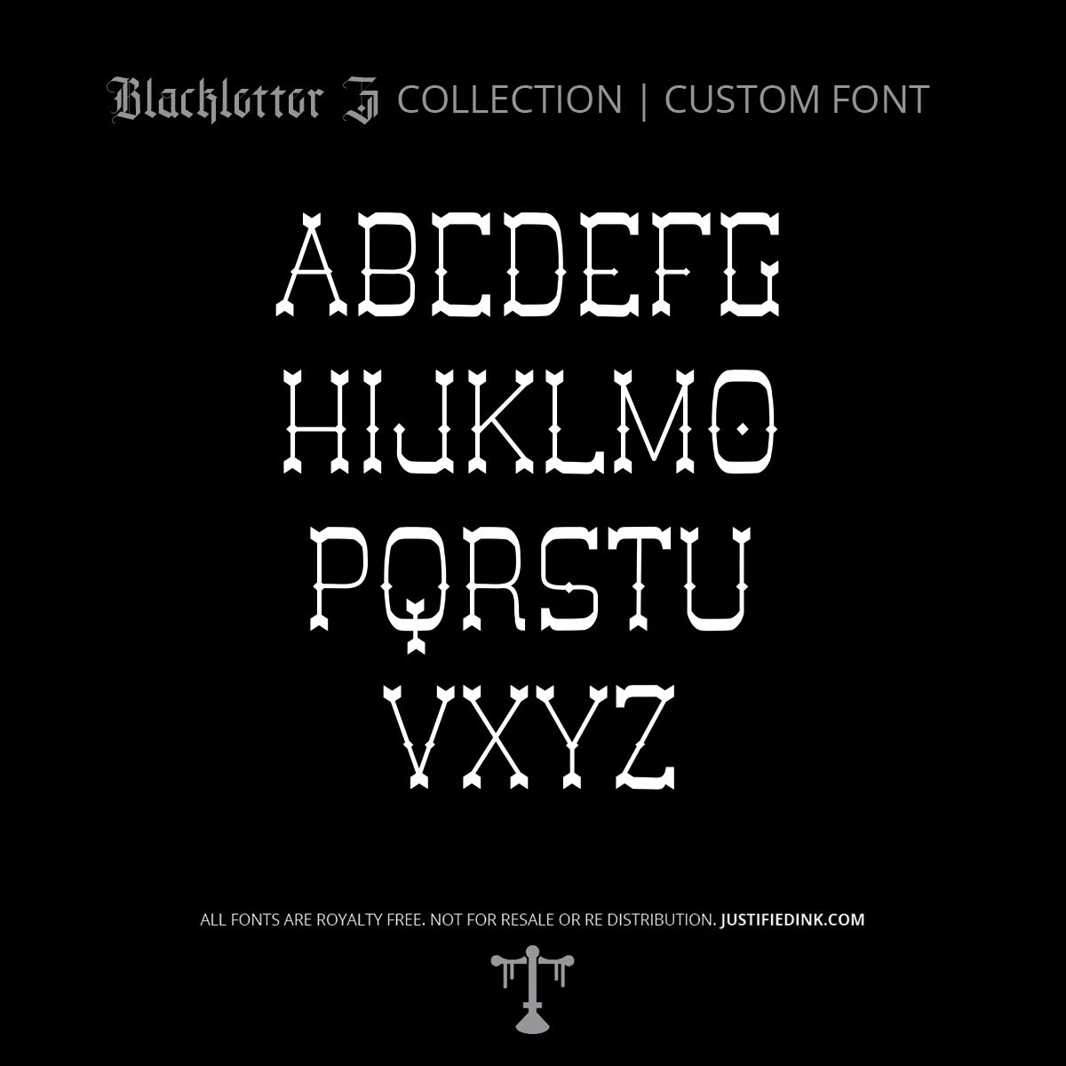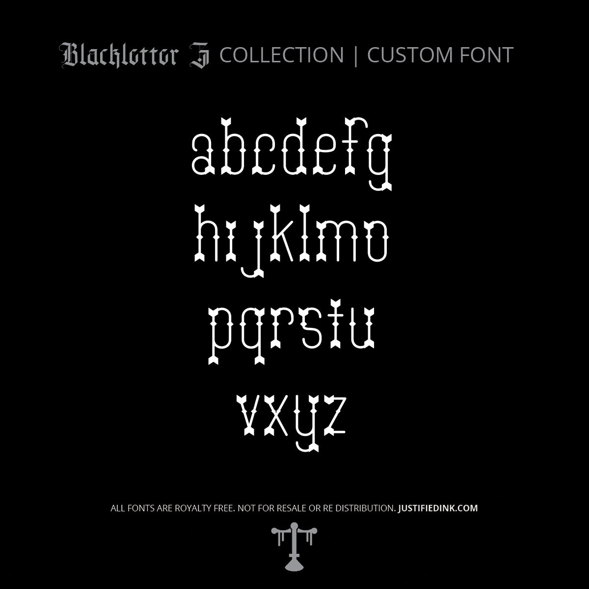 Blackletter Z is the newest addition to Justified Ink’s Atmospheric Blackletter Collection. This release builds on Blackletter II and III with over 40 new gothic fonts—including uppercase, lowercase, and full punctuation.