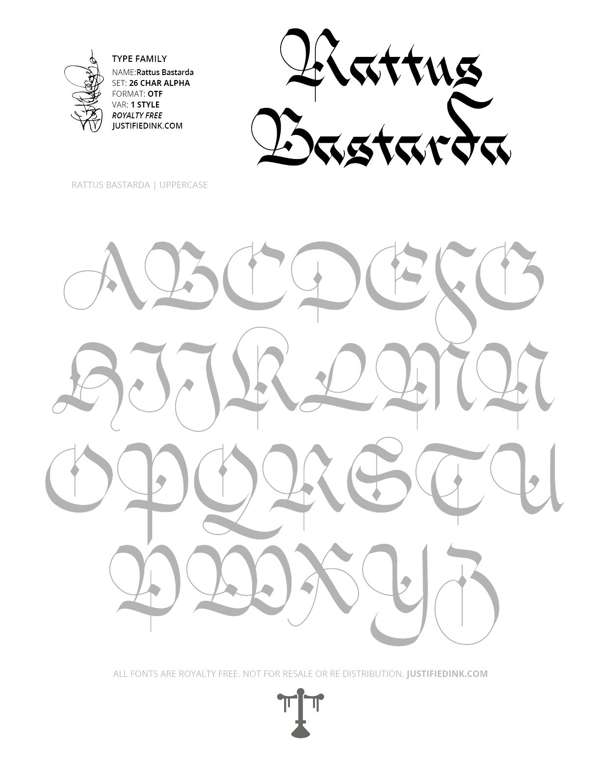 Rattus Bastarda Font By Justified Ink has been forged for creators of every kind—tattooists, designers, illustrators—these fonts are yours to wield freely in personal or professional work.