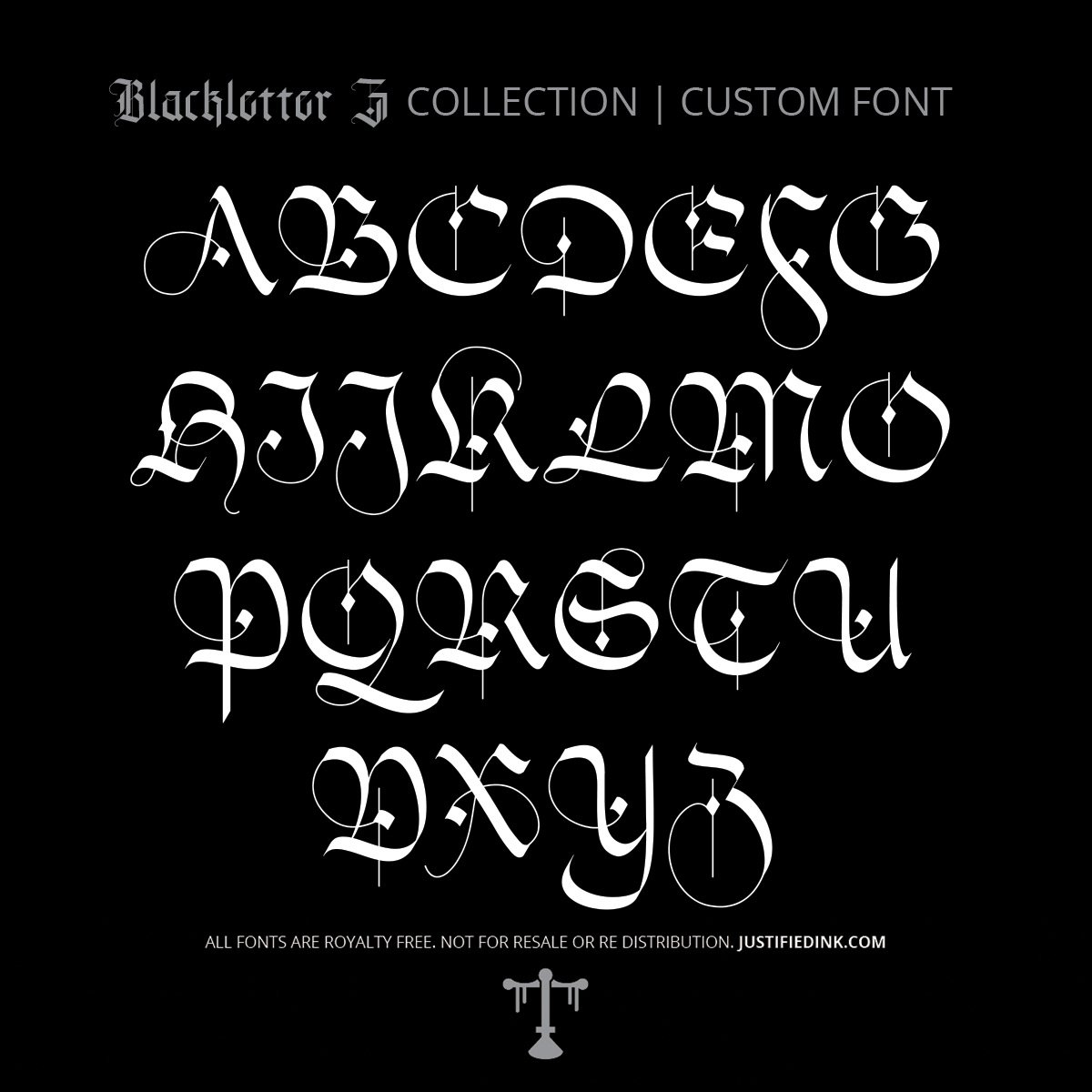 Blackletter Z is the newest addition to Justified Ink’s Atmospheric Blackletter Collection. This release builds on Blackletter II and III with over 40 new gothic fonts—including uppercase, lowercase, and full punctuation.