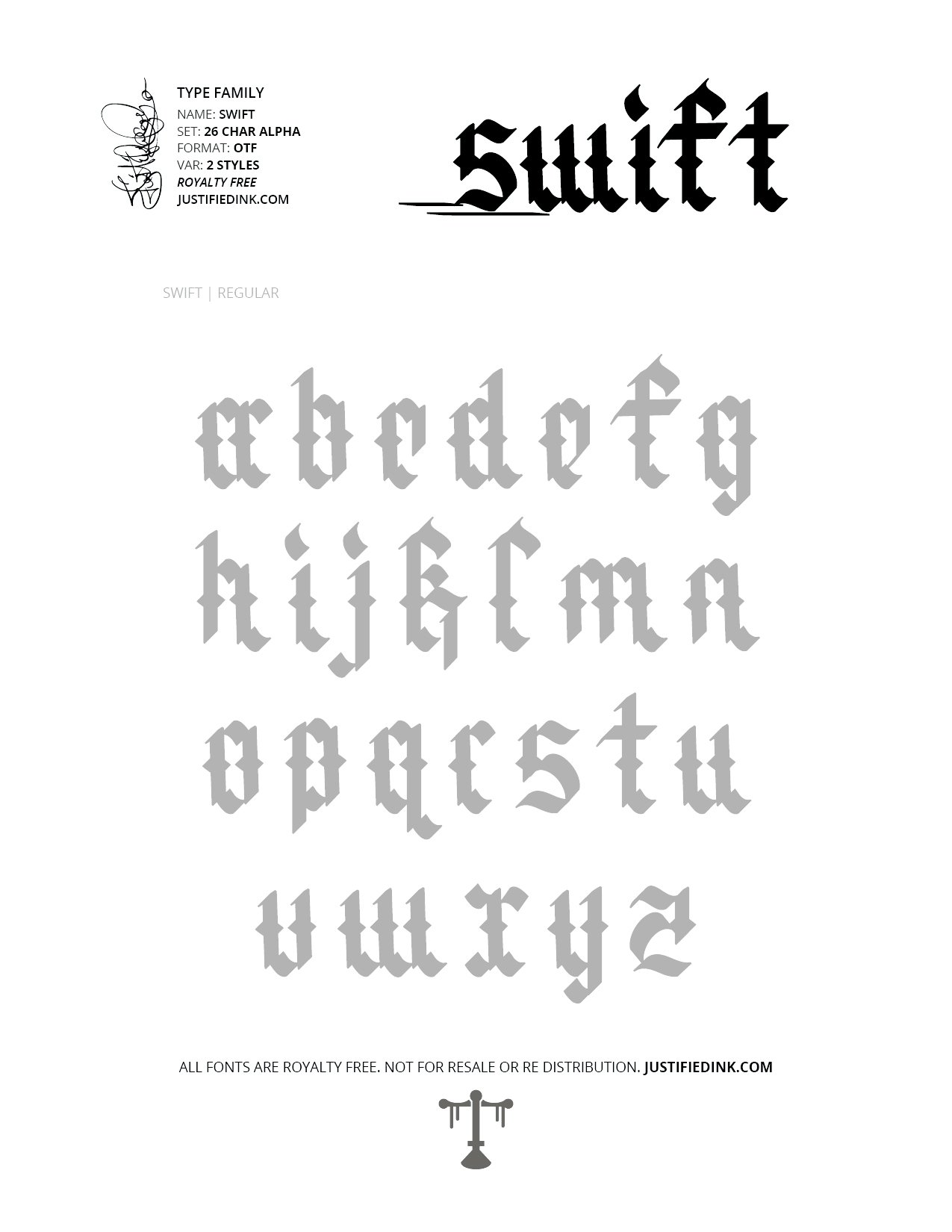 Fast and furious, Swift is a modern blackletter style that only knows one thing: moving forward.