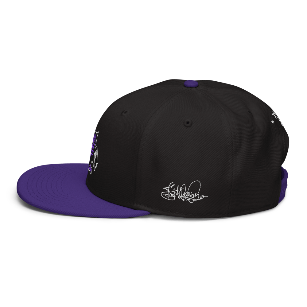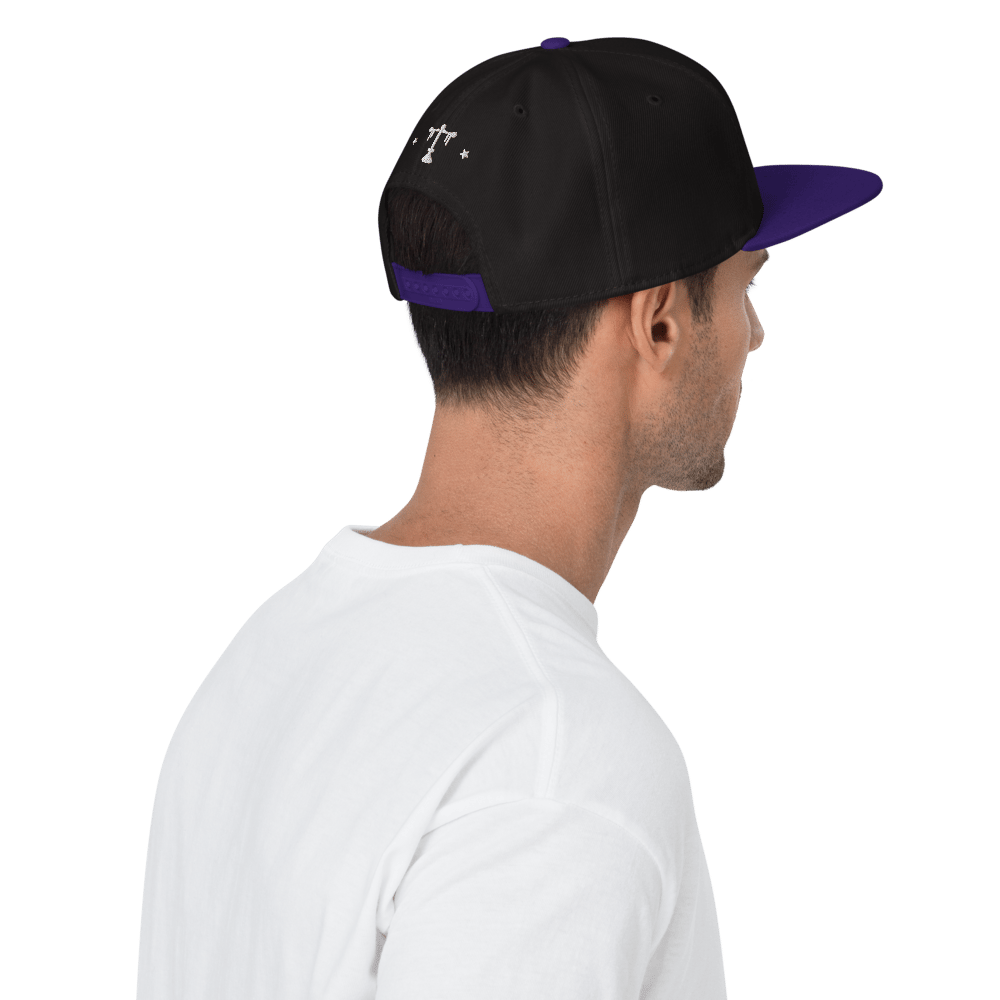 This snapback exudes quality craftsmanship. It's structured with a firm front panel, flat visor, and full buckram. Made with 8 rows of stitching on the brim, pro-stitching on the crown, and 6 embroidered eyelets.